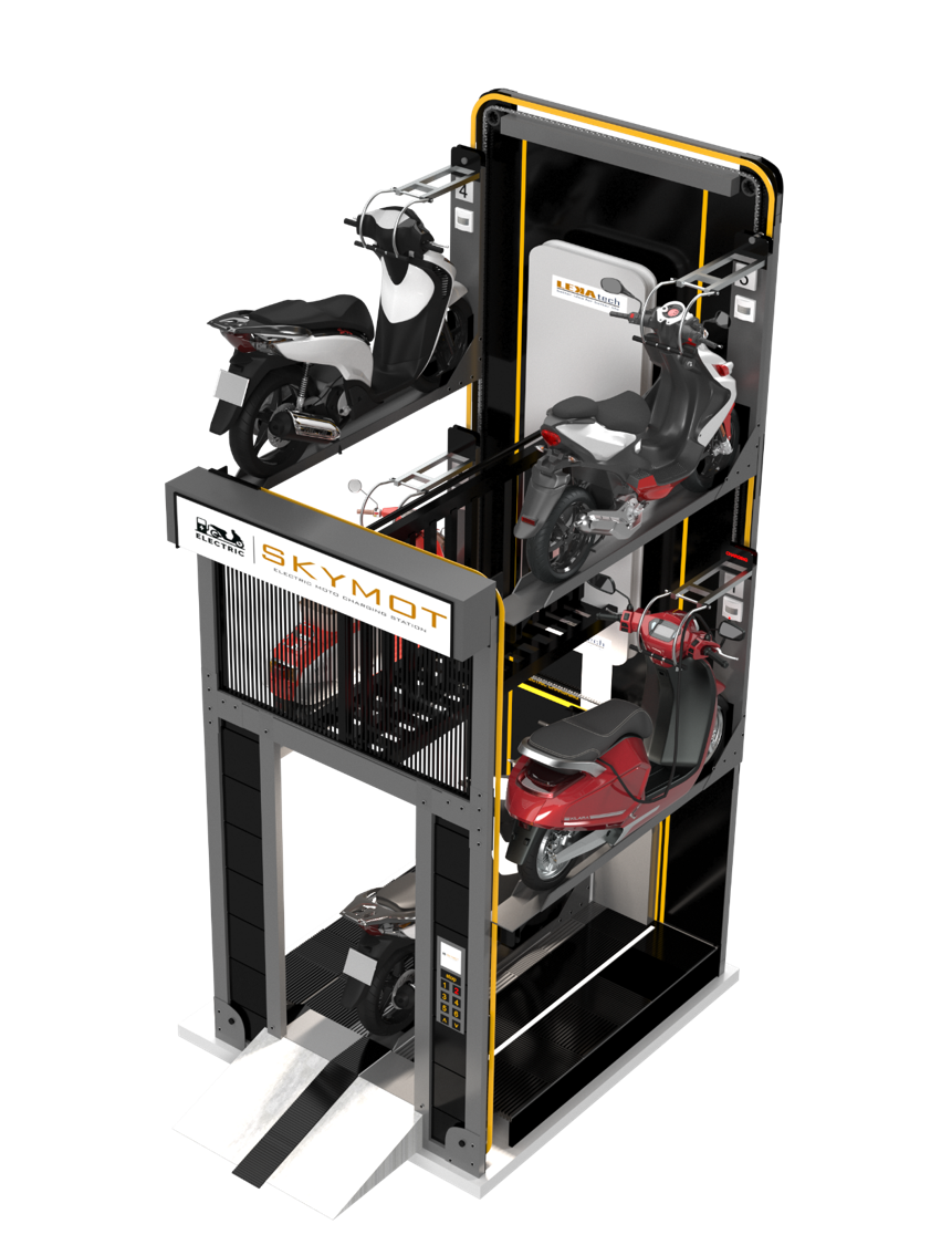 - Một hệ thống SKYMOT có sức chứa từ 5 đến 11 xe máy