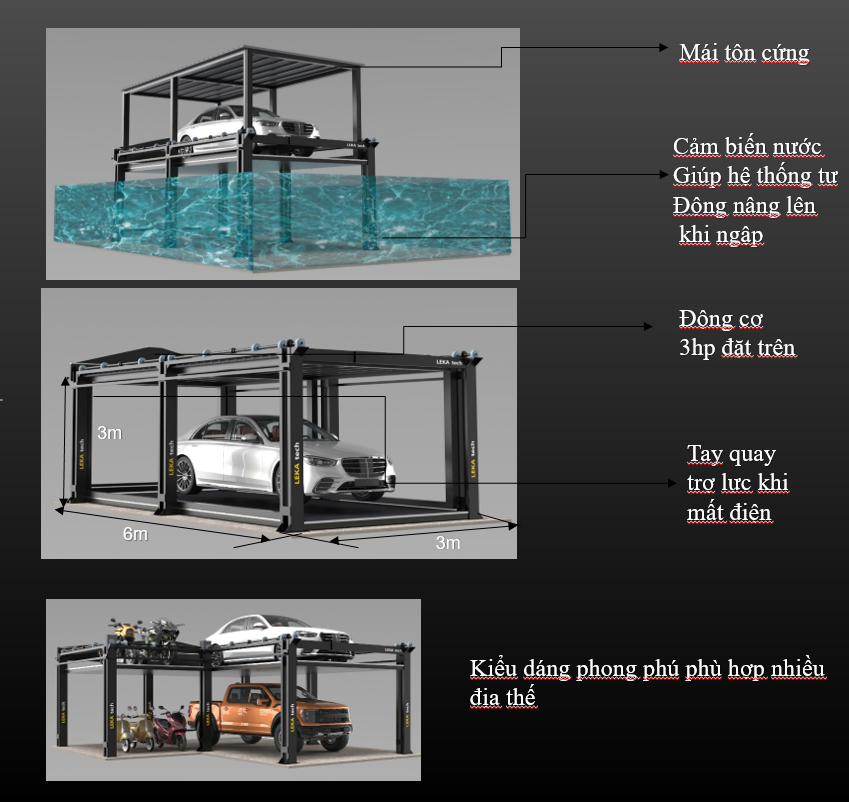 - Cảm biến nước: Giúp hệ thống tự Động nâng lên khi ngập
